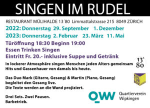 Das Wipkinger Singen im Rudel gibt es seit dem 1. Februar 2018 und wurde vier mal pro Jahr durchgeführt. Dann gabs die Zwangspause Nun ist es an einem neuen Ort mit neuen Musikern zurück.