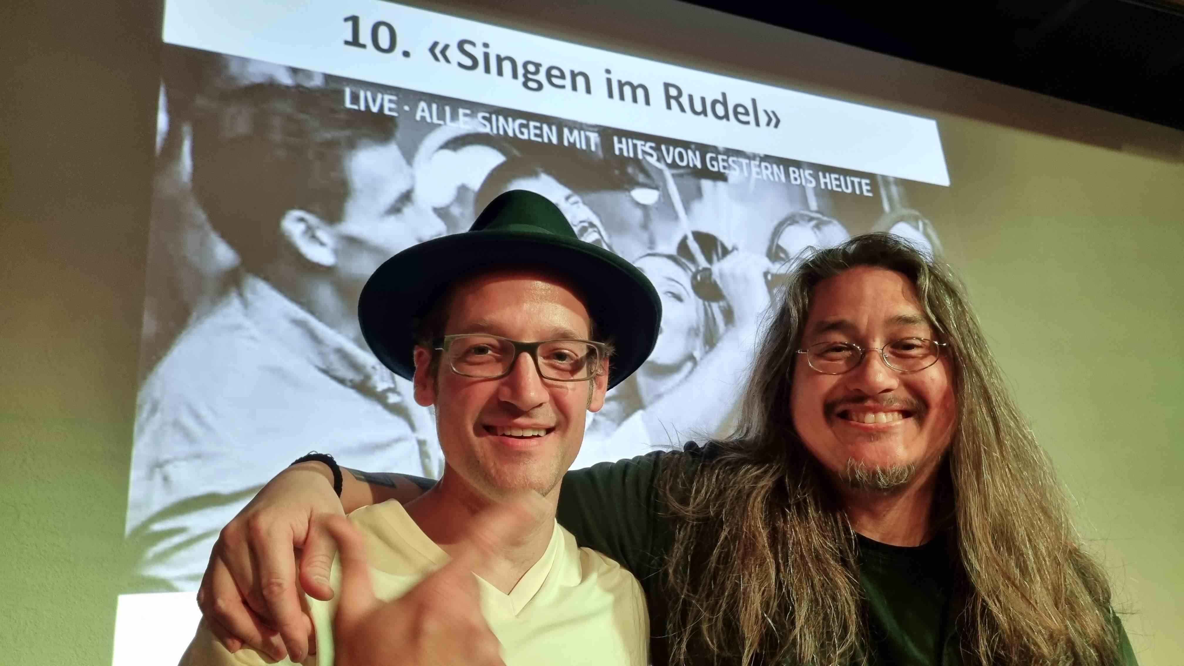 In lockerer Atmosphäre singen Menschen jeden Alters gemeinsam Hits und Gassenhauer von damals bis heute. Die beiden Profi Musiker begleiten den Gesang live. Die Texte werden an die Wand projiziert.