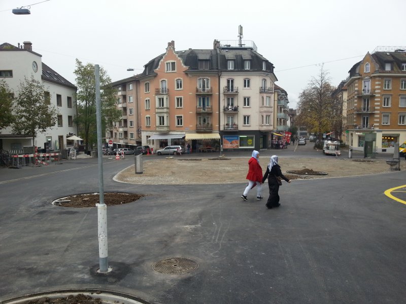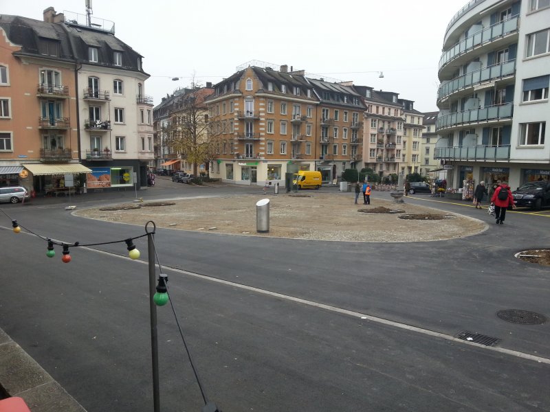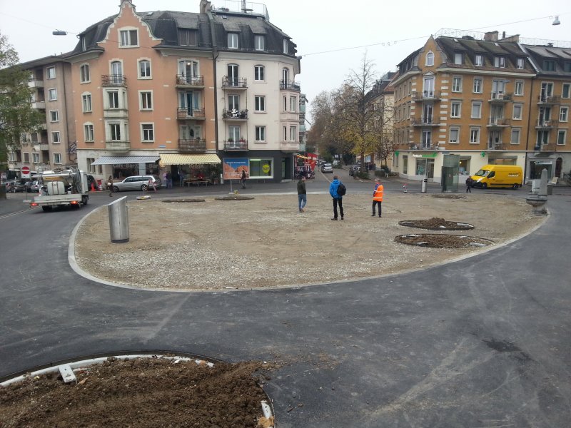 Die Neugestaltung wurde aus dem Budget 2014 finanziert. Wenn das Wetter mitgespielt haette, wäre der Platz heute fertig. Im Frühling finden die Flohmärkte statt. Dann hätten wir den Platz in der warmen Saison nicht nutzen können.