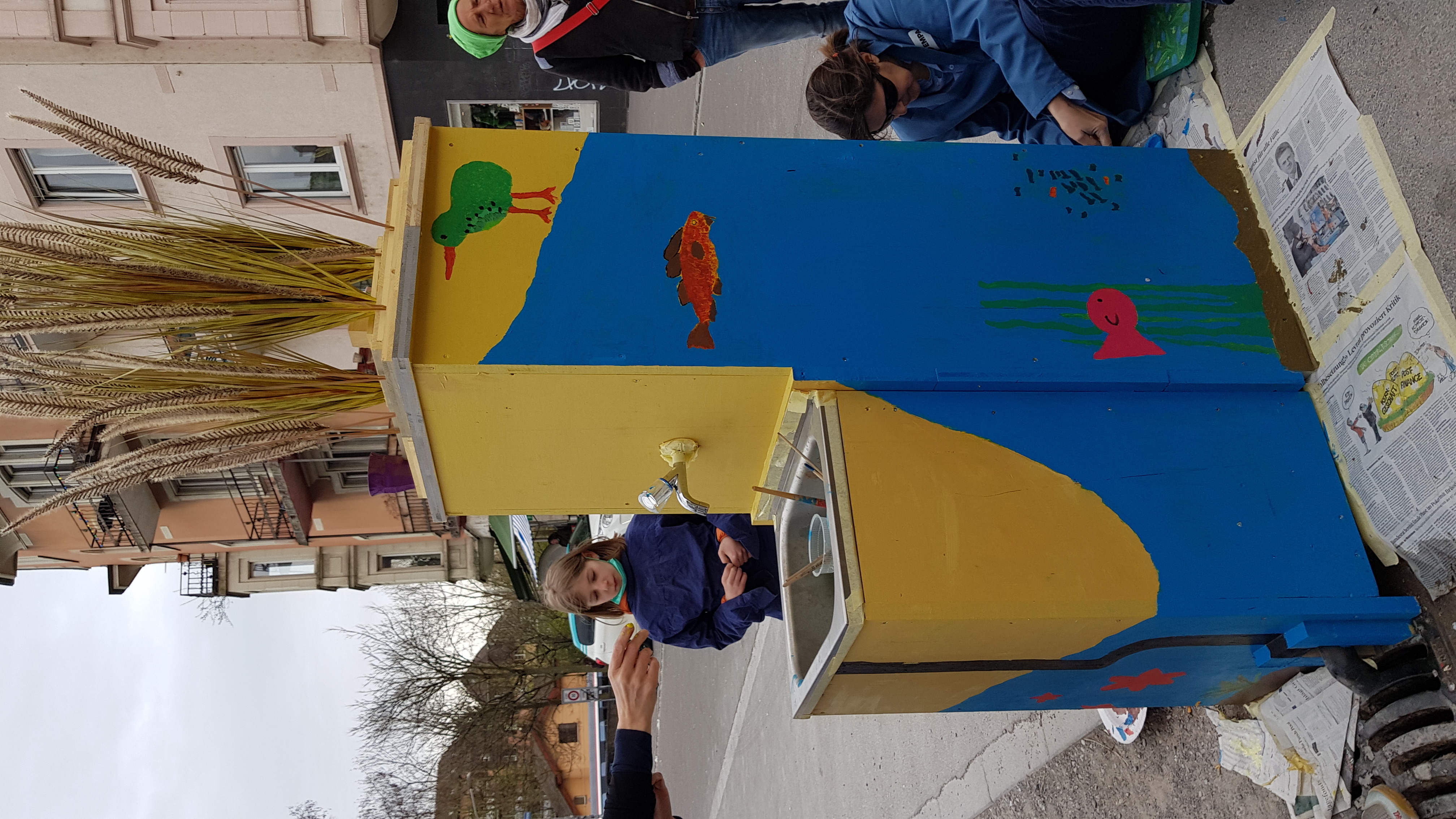 Am Ostermontag wurde der Bisongrasbrunnen durch Kinder des Schulhaus Waidhalde bemalt. Thema war “Wasser”.