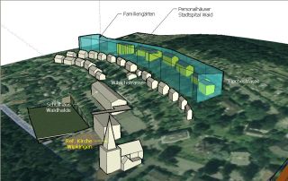 Mit anderen Worten würde der Abbruch der Personalhäuser die Entstehung von 80 Grosswohnungen für Familien an prädestinierter Lage ermöglichen, was ganz im Einklang mit dem Legislaturziel des Stadtrates steht. Mit einer Neuüberbauung könnte zudem das akute Parkplatzproblem auf dem Spitalareal gelöst werden, indem neben den Pflichtparkplatzen für die Wohnsiedlung eine Reihe von Personalparkplätzen realisierbar wäre.
