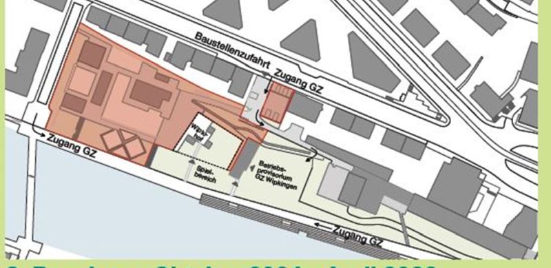Von April bis Ende Juli 2024 wird das Provisorium erstellt und die Wiese im Wipknger Park bleibt halbiert. Dafür ist das GZ Gelände nach wie vor zugänglich.