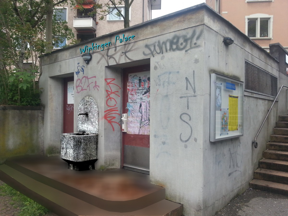 2013 sind rund 28’000.- Fr. an Spenden für eine umfassende Sanierung des einzigen öffentlichen WC’s am Röschibachplatz eingegangen. Damit lässt sich unsere Vision vom “Wipkingen Palace” umsetzen. Bereits wurde eine neue Dachrinne montiert, so dass das Regenwasser nicht mehr über die Türen läuft. Die Innenrenovation ist aktuell in Planung. Benjamin Leimgruber, unser Architekt, plant einen komfortablen, von aussen einsehbaren Vorraum, mit schönen altem Schminkstisch, trendiger Beleuchtung und stylisher Einrichtung, der die BesucherInnen geradezu dazu einlädt, in unserer neuen WC Oase zu verweilen.