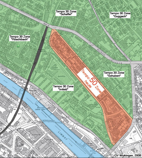 Manch einer mag sich vor ein paar Jahren schon die Augen gerieben haben, als in Wipkingen endlich die „Tempo-30“-Zonen umgesetzt wurden, denn es sind dabei ein paar Strassen verloren gegangen. Die Rousseaustrasse, ein Teil der Imfeldstrasse und der Bachofenerstrasse und die kleine Okenstrasse passten leider nicht in das Konzept und sind daher – bis heute – noch „Generell 50“.