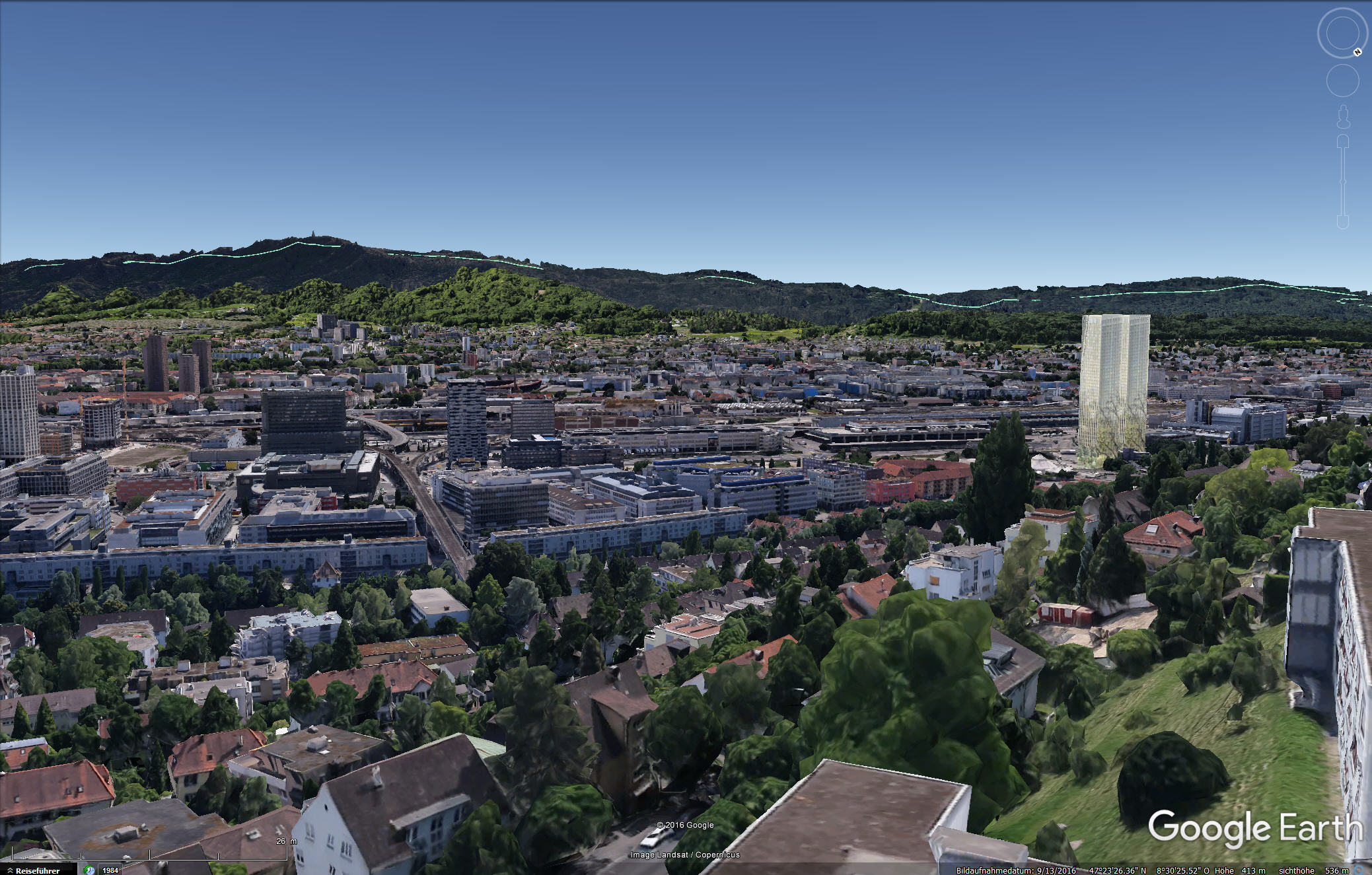 Ich möchte gerne die Google Earth Files der Türme zur Verfügung haben, damit ich auch für meine Wohnung das ganze Ausmass der Türme nachvollziehen kann.
