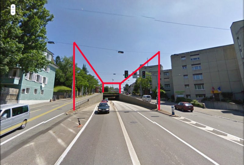 So wie zwischen den Zeilen zu hören war, hat die Stadt diese Idee geprüft, findet aber, dass die Überdeckung schlecht zu realisieren sei, da ja das Rosengartentram unten durch passen müsste. Dafür sei eine Absenkung der Strasse notwendig. Dies führt aber leider zu einer erhöhten Steigung nach der Absenkung, welche eine zahnradlose Tram nicht schaffen würde.