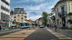 Stadträtin Brander schreibt: “Aufgrund der bisherigen Erkenntnisse besteht aus unserer Sicht kein Bedarf, die temporäre Massnahme zurückzubauen. Die Fussgänger*innen können jetzt die Strasse überall queren und nicht nur bei den Fussgängerstreifen. Insbesondere die bei den beiden Bushaltestellen aufgehobenen Überholmöglichkeiten für Autos ist für die Fussgänger*innen ein Sicherheitsgewinn. Der Verkehr fliesst insgesamt langsamer, jedoch flüssiger. Die gegenseitige Rücksichtnahme und Aufmerksamkeit der Nutzenden hat sich erhöht und somit – davon gehen wir aus ‑ auch die Verkehrssicherheit. Dazu können allerdings erst nach mehreren Jahren verlässliche Aussagen getroffen werden.”