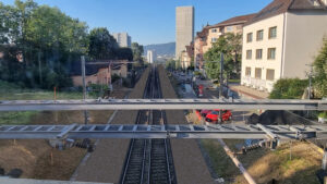 Die bisherige Unterführung an der Dammstrasse wird etwas weiter nach unten in Richtung Stadt verlegt. Neu wird sie die beiden Gleise untertunneln, so dass der Zugang auf das Perron in Richtung Hauptbahnhof weiterhin möglich ist. Neben der Unterführung entstehen auf beiden Seiten der Gleise je eine Treppe und eine Rampe. Durch die Unterführung wird eine neue direkte Quartierverbindung vom Lettenfussweg zur Damm- beziehungsweise Habsburgstrasse möglich. So positiv diese Neuerungen sind, so negativ fällt die beabsichtigte Ausführung ins Gewicht. Statt begrünter, hitze- und lärmmindernder Bahnborde sind mächtige Betonwände geplant. Hier besteht unserer Meinung eindeutig ein grosser Verbesserungsbedarf.