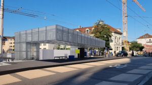 Mächtig wird das neue Portal bei der Bushaltestelle an der Nordbrücke: Es ist ein in Metall und Glas gestaltetes Mahnmal, das für einen neuen SBB-Brutalismus steht. Mit dem Charme eines Recyclinghofs soll die Haltestelle in Zukunft den wartenden Busreisenden Schatten spenden oder bei Regen ein Dach bieten. Wir vom Quartierverein (QV) hätten uns hier eine filigranere Konstruktion gewünscht, die sich harmonisch ins Quartier einfügt.
