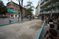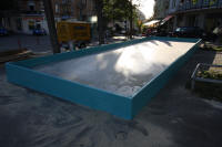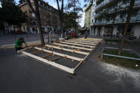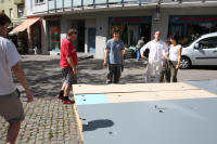 Der Aufbau fand wie geplant statt. Am Samstag 29. August 2009 bauten 7 Leute während 11 Stunden eine gerade Fläche auf den Röschibachplatz. Am Montag wurde 10 cm Mergel eingebracht und Sand eingestreut. Am 1. September feierten wir die Eröffnung.
