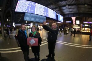 Am 30.11.2023 wurde die Petition im Hauptbahnhof an den Leiter der Medienstelle SBB AG, Reto Schärli übergeben. Die Petition richtet sich explizit an den Chef der SBB, Vincent Ducrot. Der Quartierverein hofft, dass er nun gehört wird und die Quartierbevölkerung nicht enttäuscht.