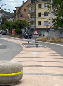 Vor einigen Wochen habe ich beim MZS auch etwas Interessantes erlebt. Mit meinem 4-jährigen Kind warten wir auf der Mittelinsel vor dem Café Nordbrücke, dass Autos anhalten würden. Da sehen wir ein Smart der Stadtpolizei in der Kolonne und dachten, dass sie uns sicher queren lassen werden. Als sie auch nicht anhalten und ich den Arm in die Luft hebe, um mich zu beschweren, halten sie gerade nach der Insel an, lassen das Fenster runter und sagen uns “Da haben Sie keinen Vortritt”. Ich rede dann von Gegenseitiger Rücksichtnahme, gutem Beispiel vor den Kindern und der Gefahr einer solchen Situation. Der Polizist will nichts davon wissen und bleibt einfach dabei “Da haben Sie keinen Vortritt”, lässt das Fenster wieder hoch und uns ziemlich sprachlos zurück.