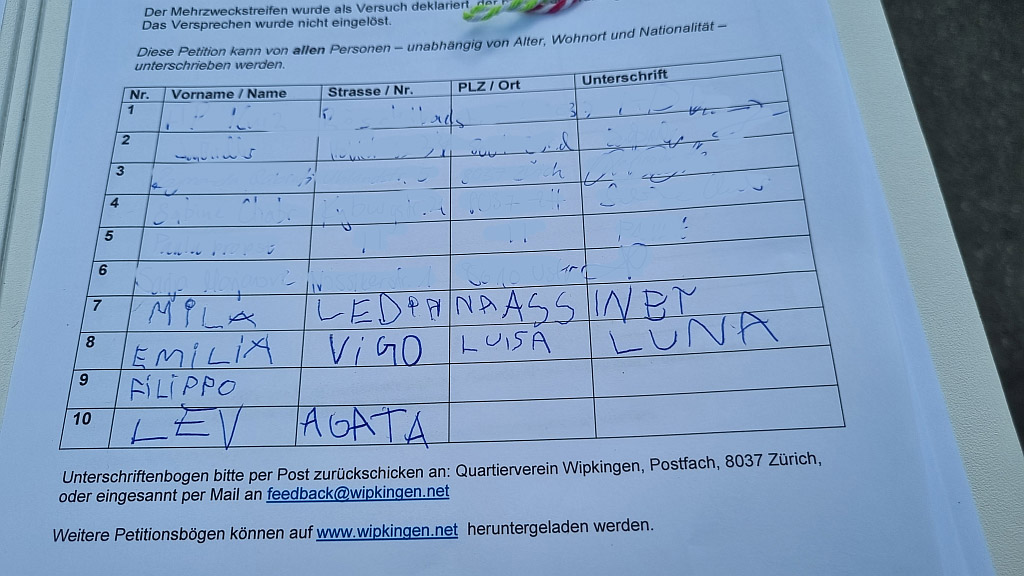 Eine Gruppe Kindergartenkinder hielt bei uns an und die Begleitpersonen unterschrieben unsere Petition. Sie teilen unsere Meinung, dass die Autofahrer keinen Vortritt mehr haben dürfen. Wir wollen die Fussgängerstreifen zurück!
