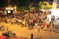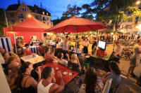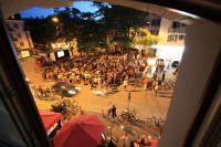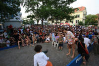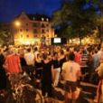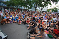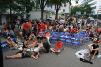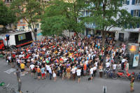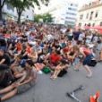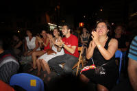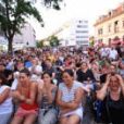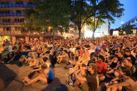 Rund 500 WipkingerInnen fanden sich zum fröhlich-friedlichen Public Viewing auf dem Röschibachplatz ein. Echtes Piazzetta-Feeling bei bestem Wetter! Gross und Klein brachten Stühle und Decken mit oder sassen einfach auf den Boden.
