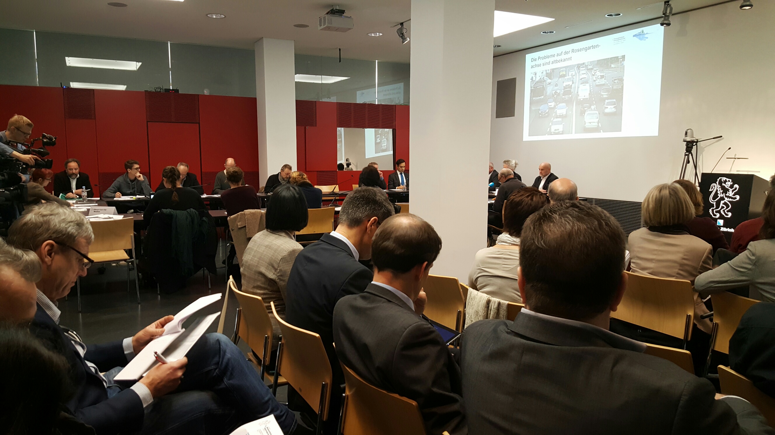 Stadt und Kanton Zürich haben erstmals eine gemeinsame, verkehrsträgerübergreifende Lösung für die Verkehrsprobleme auf der Rosengartenachse ausgearbeitet. Zentrale Zielsetzungen sind die Erfüllung der zukünftigen Mobilitätsbedürfnisse für Strasse und öffentlichen Verkehr sowie die Reduktion der Umwelt- und Lärmbelastungen. Ein heute zweigeteiltes Quartier kann nach über 45 Jahren wieder zusammenwachsen. Im vergangenen Sommer konnten Interessierte im Rahmen einer Vernehmlassung zum Spezialgesetz und dem Projekt im Allgemeinen Stellung nehmen. Zeitgleich erhielt die Bevölkerung die Gele-genheit, sich an der öffentlichen Mitwirkung nach § 13 des Strassengesetzes zu beteiligen. Heute haben Volkswirtschaftsdirektorin Carmen Walker Späh, Baudirektor Markus Kägi sowie der Zürcher Stadtrat André Odermatt über die Vorlage informiert.