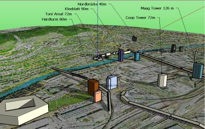 Vom Hochhaus auf dem Löwenbräuareal, dem Kleeblatthochhaus, der Überbauung auf dem Toni-Molkerei-Areal, dem Hardturmareal, dem Hardturmstadion, der Überbauung auf dem Coopareal und dem höchsten Gebäude der Schweiz, dem 126 Meter hohen Maagtower hat wohl jeder schon einmal gehört oder in der Zeitung darüber etwas gelesen. Doch wie stellt sich das neue Hochhausgebiet Zürich-West im Gesamten dar?