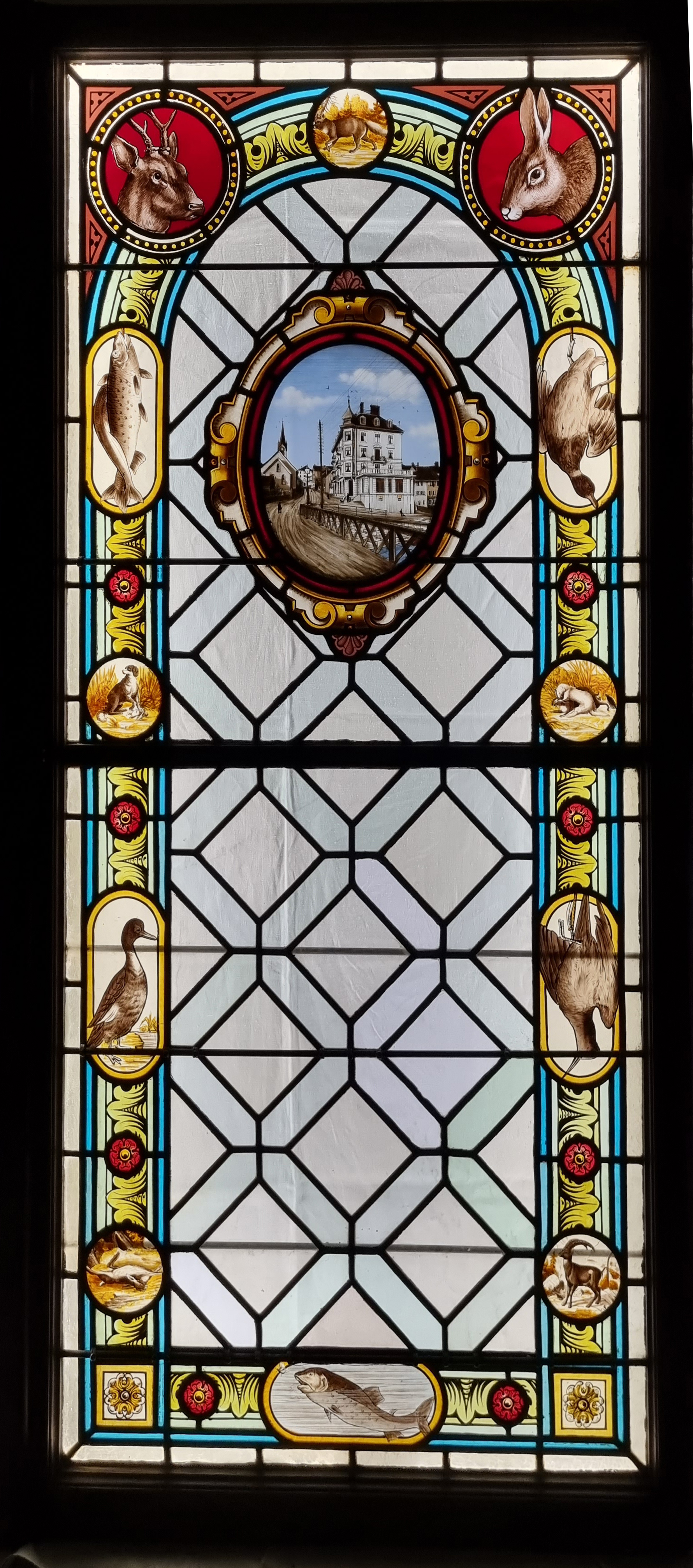 Das Fenster aus dem Nachlass von Willy Siegfried erinnert an sein Restaurant «Anker». Es wurde 1897 vom renommierten Glasmaler Georg Röttinger in Zürich erstellt, der unter anderem auch für die Familie Maggi in Kempthal Fenster gestaltet hat.
