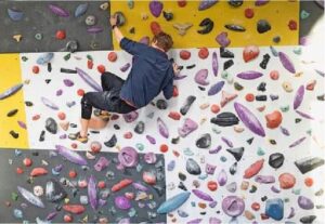 Gleiches gilt für den Aufbau des Moonboards, einer Kletterwand im Boulderbereich. Unter ihren Griffen sind LED-Lichter, die über eine App aufleuchten und so verschiedene Routen vorgeben. Um deren Installation kümmerte sich der nicht kommerzielle Kletterverein Stromchaschte.