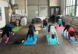 Auch Pétanque kann hier gespielt werden. Oder Pingpong. In regelmässigen Abständen finden Kunstausstellungen statt, es gibt Yogakurse, und montags ist die ganze Anlage für Finta-Personen, also Frauen, intergeschlechtliche, nicht binäre, trans und agender Personen, zur freien Nutzung reserviert.