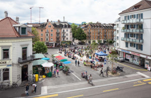 Das Tiefbauamt startete ein öffentliches Mitwirkungsverfahren zur Neugestaltung des Röschibachplatzes. 110 Mitbürger*innen entwarfen einen schrägen Platz, der vor allem die Aufenthaltsqualität fördern sollte. Vier Jahre später feierte Wipkingen die Neugestaltung. Der Verkehr war dank der Begegnungszone und dem Einbahnregime beinahe weg, das Boulevard-Café und die Sitzbänke rund um die schattenspendenden Schnurbäume laden seither zum Verweilen ein.