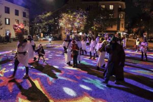 Weihnachtsprojektion Röschibachplatz, durch Projektil, mit Lichtkläusen in Wipkingen, 2.12.2022, Foto Dominique Meienberg