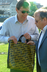 Als Dank der Quartierbevölkerung wurde ihm ein Original Wipkingenshopper überreicht.